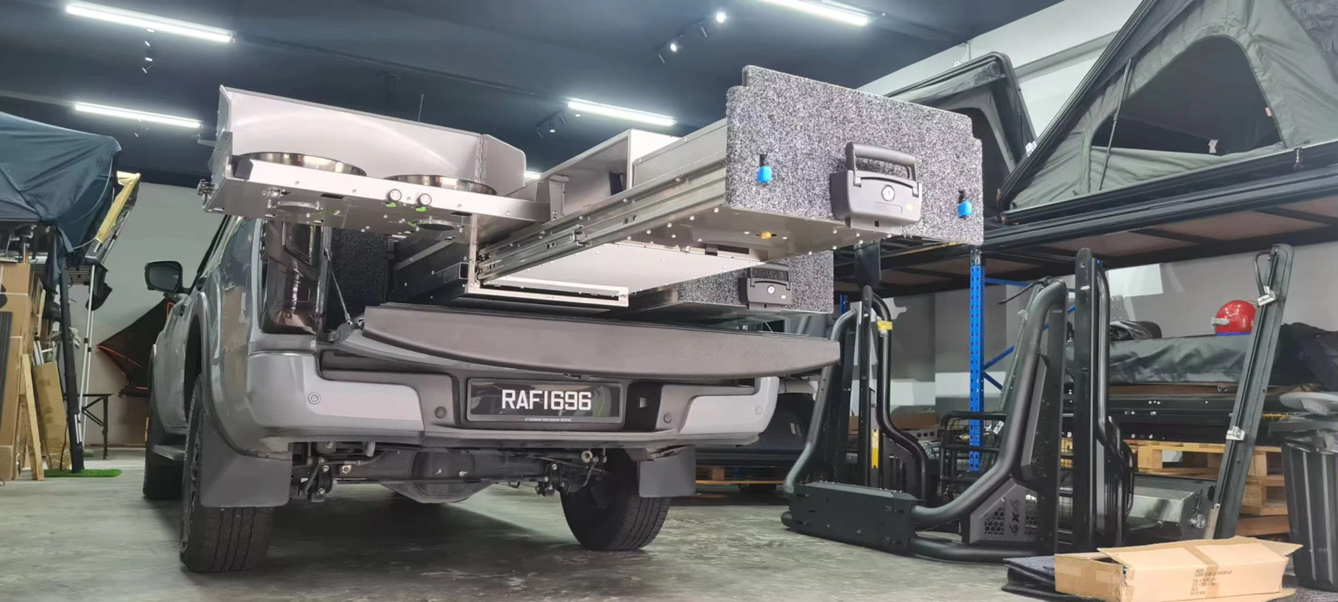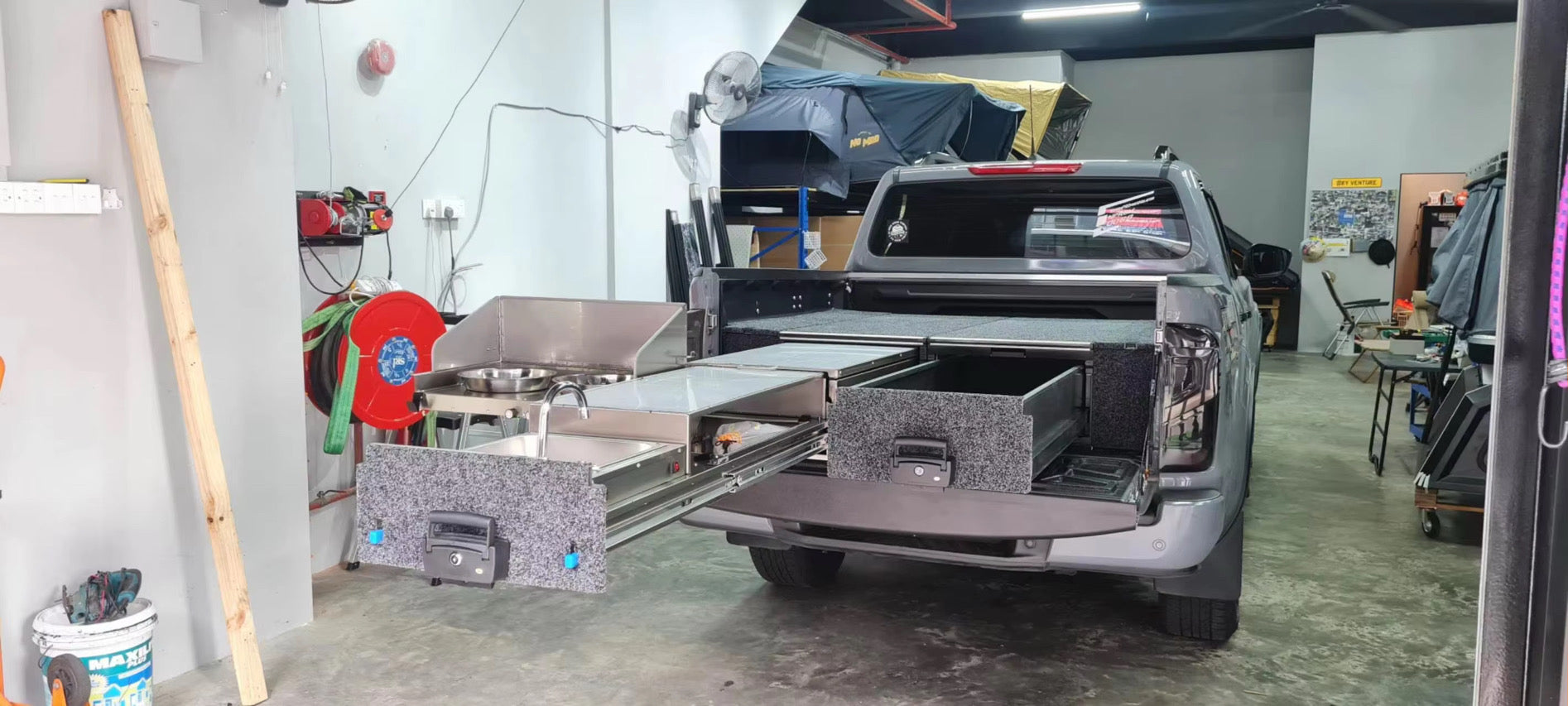 This drawer-style kitchen and storage combo is built to fit most standard pickups—like the **F150, Ranger, HiLux, Tacoma, and Navara**—with a smart layout and rugged design. Measuring **1350 × 500 × 305 mm**, it’s the perfect all-in-one solution for cooking and organizing gear while on the go.